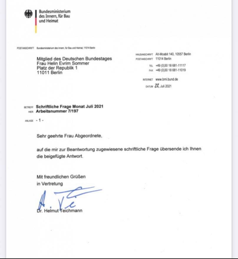 Soru önergesine yanıt veren İçişleri Bakanlığı Müsteşarı Helmut Teichmann, “Türk hükümetine eleştirel yaklaştığı düşünülen kişilerin isimlerinin olduğu farklı listeler bulunduğuna dair işaretler var” diyerek, olayın soruşturulduğunu aktardı.
