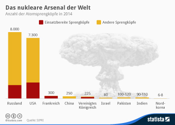 Dünyanın dokuz nükleer silah devletinin toplamda 16.393’den fazla nükleer savaş başlığı var ve bunların yaklaşık 9.600’ü askeri amaçlı. Rusya ve ABD, dünyadaki tüm nükleer savaş başlıklarının yüzde 90’ından fazlasına sahip.