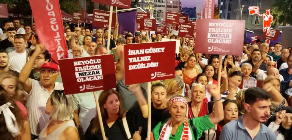 Beyoğlu Belediyesi’ne sabah saatlerinde düzenlenen operasyon kapsamında Belediye Başkanı İnan Güney ile birlikte bazı belediye çalışanları gözaltına alındı. Operasyonun ardından belediye binası önünde toplanan kalabalık, kararı protesto etti. CHP İstanbul İl Başkanı Özgür Çelik, burada yaptığı açıklamada, “İnan Güney yalnız değildir” sloganlarıyla başlayan eyleme destek verdi.