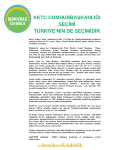 Demokrasi İçin Birlik, seçimlerin sadece KKTC’de değil Türkiye’de de demokrasi açısından belirleyici olacağını belirterek şu ifadelere yer verdi: