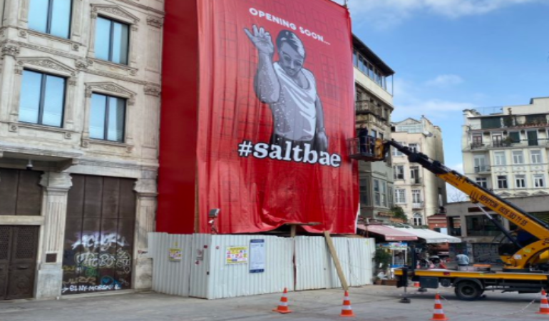 Dünya çapında tuz serpme hareketiyle tanınan kasap Nusret Gökçe, yeni şubesinin açılacağı İstanbul Galata Meydanı’nda bulunan tarihi binaya kendi posterini astırdı. Asılan posterin tüm binayı kaplaması ise tepki çekti.