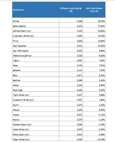 TÜİK alt grupları gösterge olarak alındığında en fazla aylık artış yüzde 0,80 ile sağlık en fazla yükseliş ise yüzde 16,51 ile konut kaleminde gerçekleşti.