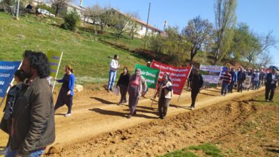 Malatya’da Çevre Etki Değerlendirmesi yapılmadan başlanan maden ve sondaj faaliyetlerine karşı Doğanşehir Hudut köylüleri ve çevre dostları maden arama faaliyetlerinin son bulması için maden alanına yürüyerek basın açıklaması yaptılar.