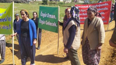 Hudut köyünden maden alanına kadar bir yürüyüş yapıldı. Eylemciler sık sık “ormanlar özgürdür özgür kalacak” “havama, suyuma, ormanıma dokunma” sloganları eşliğinde basın açıklaması yapılacak alana geldi.