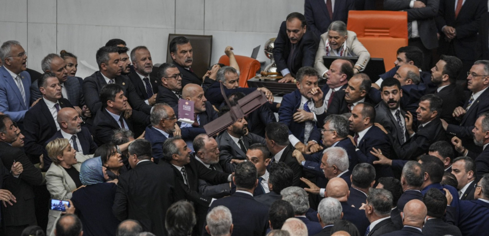 TİP İstanbul milletvekili Ahmet Şık’ın yaptığı konuşma tansiyonu artırdı ve genel kurula 15 dakika ara verildi. Ahmet Şık’ın AK Parti grubuna yönelik sarf ettiği ifadeler sonrasında Meclis’te gergin anlar yaşandı. Kavgayı başlatan ve ilk yumruğu atan kişinin AK Parti Milletvekili Alpay Özalan olduğu belirlendi. Özalan, Ahmet Şık’a yumruk attı. Kavga sırasında DEM Partili Gülistan Koçyiğit’in kaşı yarılırken, CHP’li Okan Konuralp de yaralandı. Alpay Özalan ile Ahmet Şık’ın da bulunduğu gruplar arasında çatışma çıktı ve yumruklar havada uçuştu.