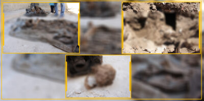 Mınbiç Belediyesi çalışanlarının kanalizasyon çalışmaları sırasında insan cenazelerine rastlanması üzerine sağlık ve güvenlik ekiplerine haber verildi.