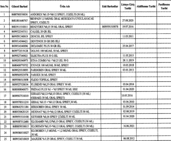 Aynı listede yer almamakla birlikte geri ödeme başvuruları bulunulan ve karar ağacı tamamlanan ve/veya değerlendirme süreci devam eden, antiinflamatuvar ilaçlar olarak adlandırılan spreyler, eklem-kas ağrısı tedavisinde kullanılan jel ve merhem gibi topikal ilaçlar, çocukların diş çıkarma döneminde kullanılan ağrı kesici topikal ilaçların geri ödeme kapsamına alınmaması kararlaştırıldı.