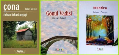 Ridvan Ozkurt Anç̆aşi: Hişo: “Çona”, “Mendra”, “Gonul Vadisi” ,”Çam Kokulu Sevdalar”, “Guneşin Uşuduğu Yer”. “Çona” do “Mendra” Lazuri şiirepe’n. “Gönül Vadisi” do “Çam Kokulu Sevdalar” Turkuri Şiirepe’n. “Guneşin Uşuduğu Yer”, Turkuri romani; Fort̆una Vadi, K̆açk̆arepe oreperepeşi heçayeşi romani oren. Hani huyşa nagamxtu çitabepe. Na voyondrinapam, na gamaxtasen çitabepeti koran. Ar tane Lazuri romani, ar tane Lazuri heçaye, ar taneti xolo  Lazuri şiiri. Ar do Turkuri şiiri çitabepe p̆andemi do memleketi mʒika ont̆aleri naon şeni irituli viyondram, va gamoviğam. Ora muşi moxtasi, cevobažgaten, gamoviğaten, hişo vimedam. Ma p̆olit̆ik̆aşa gale muti hiçayeşi şiirepe mç̆arum. Oropaşi şiirepe opşa mç̆arum. K̆oçepeşi, germapeşi, golapeşi, oginerepeşi. Na it̆rağudenşi şiirepe dido mç̆ari. Muzisyeni- sanatçepe na t̆rağuduti kon, ot̆rağudoni şiirepe dido on do huyneri muzisyenepe bestekari varuyonuran. P̆oli celaxuneri turki do şarki var izit̆t̆en, var ixeninen. Muç̆o izit̆t̆en, oginerepe na nç̆areype, na t̆rağudeype, anonimi na cozun, turkepe, şarkepe, ozit̆ute ham orape goluçuman. Ar t̆elevizyonişi p̆rogrami Turk-xalk̆ muziğişi sanatçi şk̆ala beraberi vort̆it. Moderat̆ori uʒ̆u çi himu, Ridvanişi ham şiiri moy turki varikum do var t̆rağudamya çi, sanatçi cevabi meçu, telif hakki vamemaçeran, anonimi bedava kon do him muşeni cencareri mepçatya. Ham orape haşo golun, mup̆at. Xanpaluği konoxvey.