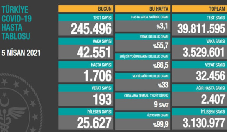 Buna göre, 5 Nisan itibariyle Türkiye’de toplam vaka sayısı 3 buçuk milyonu aştı.