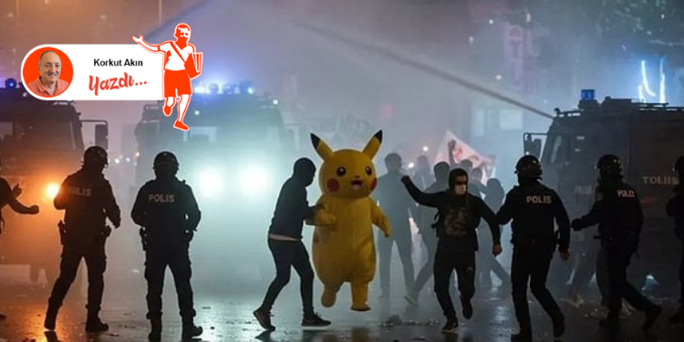 Bu yandaş televizyondan yayın yapan çakma radyo kanalında konuşan kişi, Nâzım’ı okumaz, anlarım, işine gelmeyeceğini bilir. Ama “beşinci kol” faaliyetiyle alanlara taşındığını söylerken kendisini dinledi mi acaba? Yaşı tutuyor mudur, bilmiyorum, ama 555K, DGM protestoları, 1 Mayıslar, Madenci Yürüyüşü, Gezi direnişi, hatta Suruç’ta, Ankara’da Gar’da yapılan miting ve yürüyüşleri hiç mi duymadı, irdelemedi? Kendisinin dediği gibi, “kız arkadaşı istedi diye”, “oradan geçiyorken” gibi mazeretler ileri sürenler kaç kişidir? 12 Eylül’de on binlerce insan gözaltına alındı, tutsak edildi, işkence gördü, hatta idam edildi, hangisi inancından ve yaptıklarından bir adım geri attı? Diyor ki, Pikachu ile gençlerin aklını çeliyorlar. Bu kadar mı kandırır insan kendini; bırak bari bize yalan söyleme. Saraçhane’de onca gece onca insan toplandı; Türkiye’nin dört bir yanında, onlarca meydanda insanlar sloganlar eşliğinde yapılanları ve yaşananları protesto etti. Diyelim ki, görmedin, yayınında olduğun kanal vermedi ama birbirinizle de mi konuşmadınız? Pikachu ile kandırılıyor dediğin gençlere, bir de yüzün kızarmadan inandığını söylüyorsun. Yalan! Tümüyle yalan!. Gençlere inansan, niye bunca insan sokağa dökülüyor diye sorardın kendine. Gençlere inansan, Anayasal hak olan gösteri ve yürüyüşlere karşı vahşice saldıran polise emir verenler de dâhil itiraz ederdin. Pikachu ile gözü boyanıyormuş gençlerin. Oysa o gençler, onlarca pankart yazıp taşıyor ince mizah yüklü. Yıllardır ODTÜ mezunu olan gençler törende pankartlarla yürüyor. Bu kadar siyasi kör olma!
